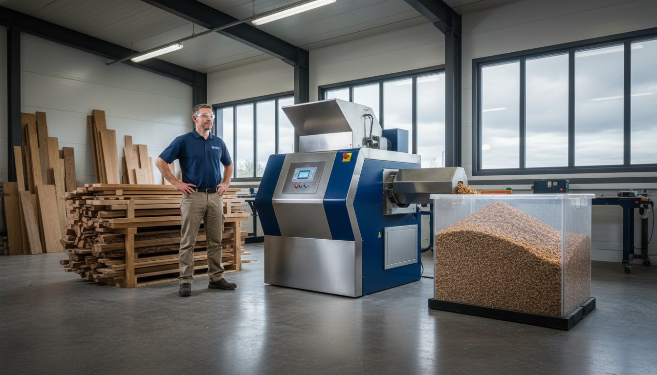 Selecting the correct machinery begins with a precise audit of your weekly waste output. A joinery shop generating 5 tonnes of offcuts per week requires a significantly different specification than a high-volume factory producing 25 tonnes. You must measure your waste by volume, typically in cubic metres, to determine the necessary hopper capacity and throughput speed. For most UK SMEs, a throughput of 100kg to 300kg per hour provides the necessary headroom to manage peak production periods without creating bottlenecks. Over-specifying leads to unnecessary energy costs, while under-specifying results in mechanical strain and frequent downtime.