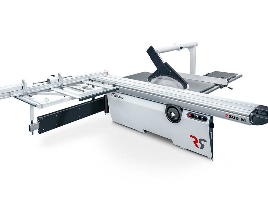 The Robland Z500 M is a high-capacity sliding table panelsaw designed for heavy-duty industrial use. With its 500 mm main blade, powerful 7.5 hp motor, and robust cast-iron construction, it delivers exceptional cutting depth and performance on large solid timber or composite panels. The 3200 mm sliding table runs smoothly on hardened steel guides, ensuring long-term accuracy and effortless material handling.