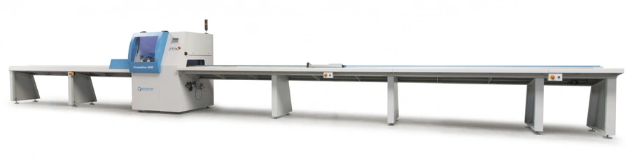 The Crossline 500 automatic cross cut saw has a ø500 mm saw blade. Fed via a servo driven electronic loading pusher, the saw is robust and efficient. There is a static unloading table where cut pieces are automatically placed. As well as standard cutting, the Crossline 500 can also be programmed to cut in pairs increasing your workshop efficiency further.